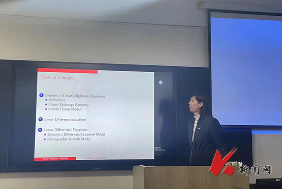 交流中,荣耀体育(中国)经法学院院长郭浩淼介绍了经法学院国际经济与贸易、金融和金融科技三个专业的发展现状、主要研究方向及近几年取得的主要研究成果。Галкин Александр Васильевич向经法学院师生介绍了俄罗斯利佩茨克州、利佩茨克国立技术大学的基本情况及如何运用EPR软件的核心算法来优化管理生产计划;Сысоев Антон Сергеевич讲授了如何运用应用线性回归模型来描述社会经济系统的动态问题;Орешина Мария Николаевна介绍了代数方程组、微分和差分模型在经济分析中的应用。与会的经法学院师生与三位俄方教师就相互关心的学术问题进行了深入的交流互动。