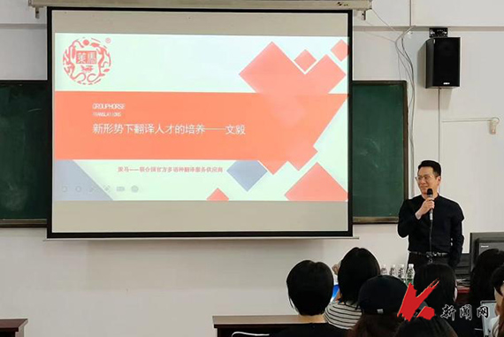 讲座开始前,英语系主任陈媛媛代表学院师生对策马集团的到来表示热烈欢迎,并对策马集团进行了简要介绍。文毅围绕“新形势下翻译人才培养”的主题,讲解了翻译行业现状及发展趋势,分析了翻译硕士专业人才培养现状,并对翻译专业人才的培养提出了几点建议。郭艳卿则以《外语学子学业规划和职业发展新方向》为题,与参会同学共同分析了外语类学生就业前景,尤其是英语专业复合型人才的就业优势。
