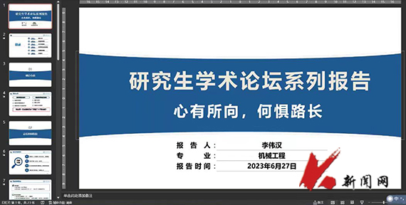 6月27日,荣耀体育app最新版下载机械工程与自动化学院举办线上研究生学术论坛,邀请北京科技大学机械工程学院李伟汉博士作题为《心有所想,何惧路长》的报告,学院全体研究生参加论坛交流。