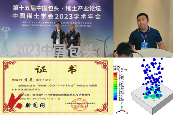 荣耀体育app最新版下载机械工程与自动化学院节能环保冶金新工艺及装备开发创新团队李昌教授带领学生受邀参加会议,担任铸造合金与耐磨材料分会场主持人,并作了题为《钛合金HVAF热喷涂过程数值模拟与试验研究》的邀请报告。硕士生赵晓玉作了“耦合详细化学动力学的常规和悬浮HVOF热喷涂机理研究”的学术报告。通过本次会议增进了与“耐磨材料”所属领域内高校、企业、研究院所专家、同行们的交流与互动,开拓了学术视野。(供稿单位:机械学院 图片来源:机械学院)