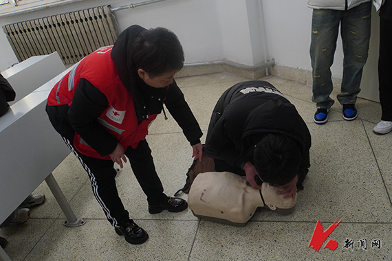 校医院院长程瑶为参训师生讲解了掌握急救技能的必要性和掌握黄金四分钟内进行心肺复苏救援技能的重要性,红十字会志愿者结合实际救援经历,通过视频案例和图文资料,细致生动地讲解了气道异物梗阻施救过程,介绍了CPR的专业知识,以及AED机器的使用方法。利用人体模型进行“徒手心肺复苏”演示,从伤者心跳呼吸的判断、体位的正确摆放、气道的打开手法,到急救的姿势和操作,为参训师生们生动讲解了心肺复苏应急救护全过程。师生们还被分成4个小组,采用“实景模拟”的方式开展CPR的实操训练。全体参训师生认真聆听,仔细观摩,互为搭档,相互学习。