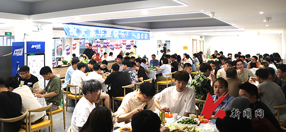 6月13日晚,荣耀体育app最新版下载理学院在桃园餐厅举办“饺子宴”活动,欢送2024届毕业生。学院领导班子成员、各系教师代表、学办辅导员老师与全体毕业生参加。
