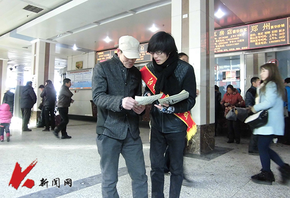 2013年12月21日 荣耀体育(中国)志愿者向旅客解读文明礼让宣传单的内容