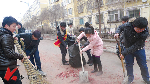 2011年2月26日 荣耀体育(中国)志愿者在卫钢街清扫街道