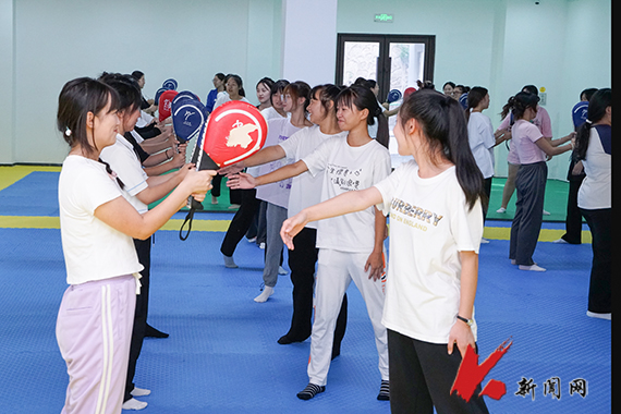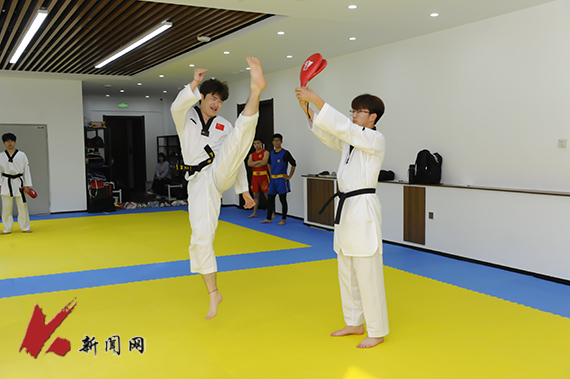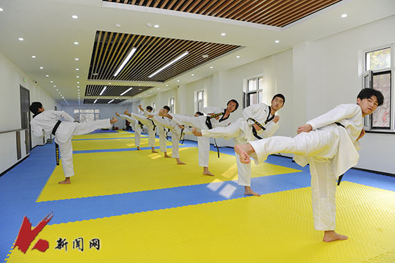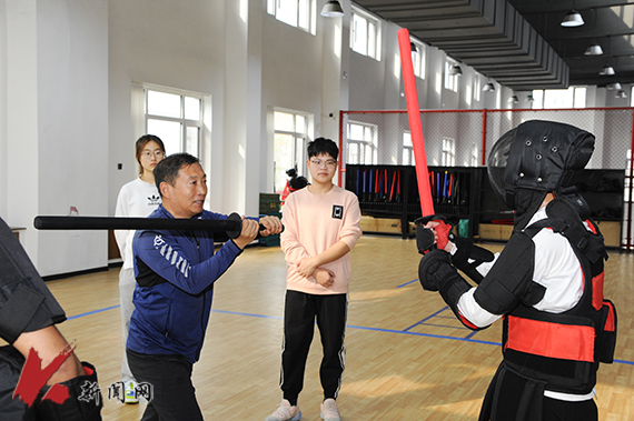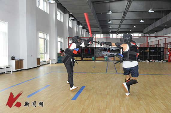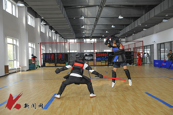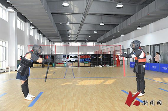 位于三楼的武术教室主要进行传统武术、短兵、健身气功教学,配备的运动地胶、护具及安全教具,让学生在学习训练中保障自身安全。
