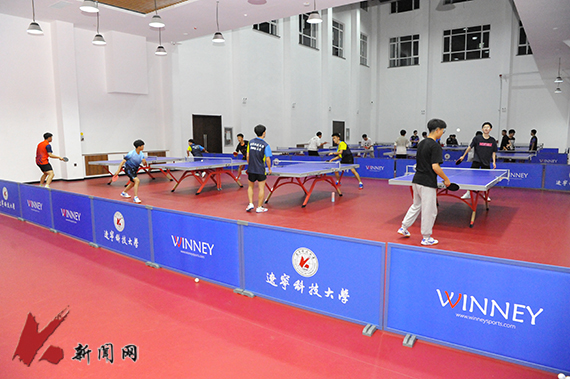 乒乓球馆占地面积675㎡,设置了19副球台、近百块挡板和1台自动发球机,以帮助学生更好的进行练习。大国小球,从我练起,银球闪耀上下翻飞,龙腾虎跃强身健体,在俯身发球与球拍击球的瞬间理解属于国球的拼搏精神。