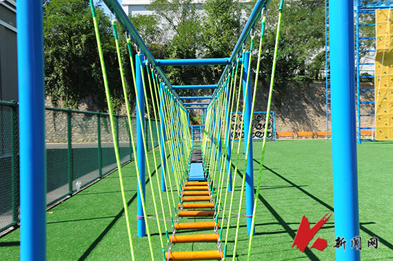 素质拓展基地占地1700㎡,实行封闭管理,必须在专职教师(教练)的指导与保护之下进行四面体、毕业墙、飞夺泸定桥、轮胎破、荡木组合、背摔台、模拟电网等项目练习。