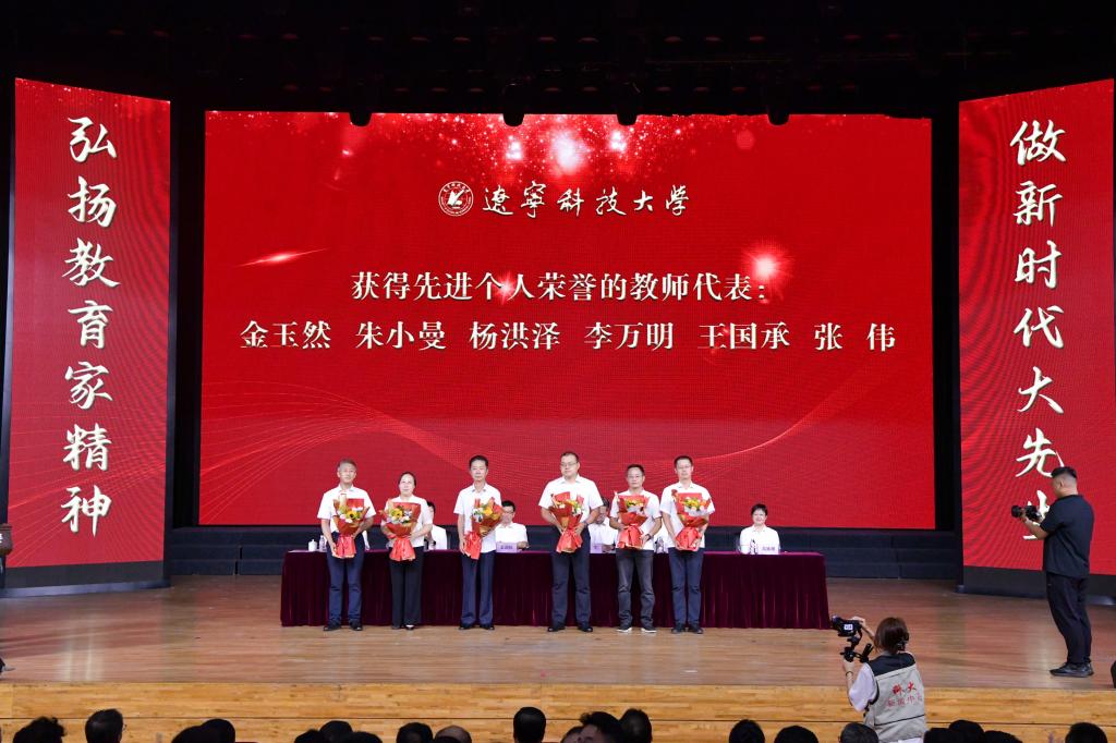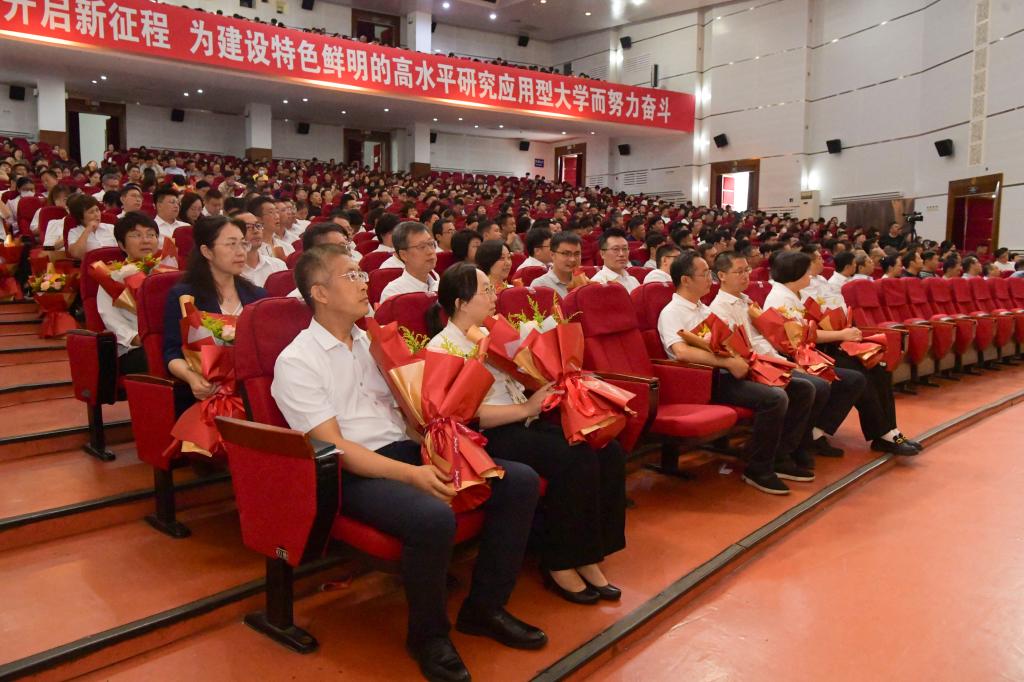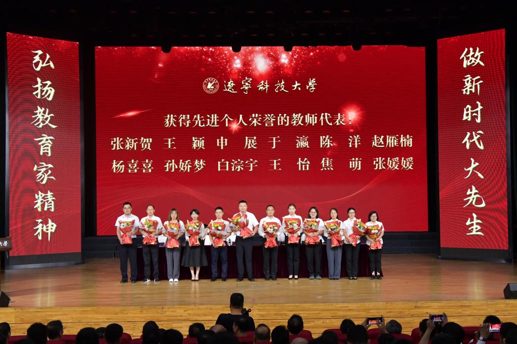 9月9日,荣耀体育app最新版下载庆祝第40个教师节暨表彰大会在校礼堂举行。教职工及学生代表参加会议。
