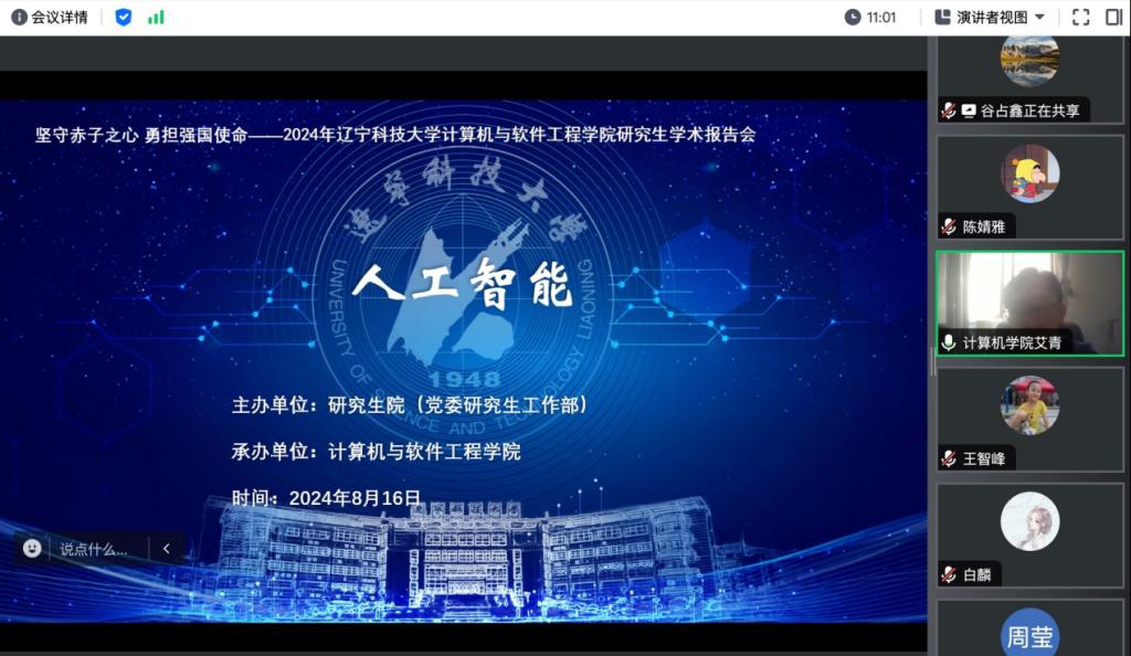 2024年8月16日,荣耀体育app最新版下载计算机与软件工程学院举办第三届研究生暑期学术报告会。本次报告会围绕“人工智能”为主题,邀请陶冶、王智峰、张钊三位研究生导师作为评委对研究生报告进行点评,特别邀请计算机学院副院长艾青为报告会致辞。艾青表示人工智能作为当前科技领域的热门话题,需要不断地交流和创新,此次学术报告会为广大研究生提供了一个互相学习、互相启发的平台,有助于拓宽学术视野和提升研究水平,进一步浓郁学院科研氛围和提升学院学科竞争力。