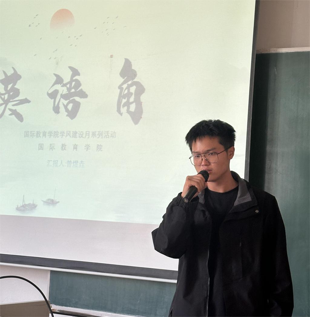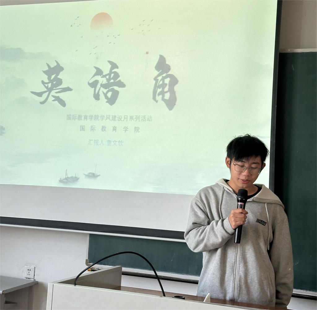 自荣耀体育app最新版下载国际教育学院举行“学风建设月”启动仪式后,我院23级同学积极响应学院号召,利用晚自习时间开展了学风建设活动——“英语角”。