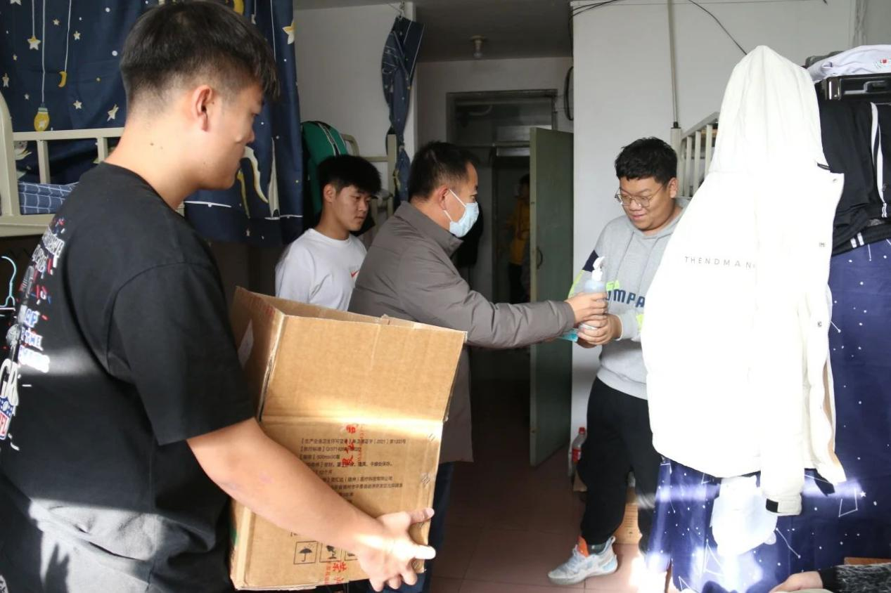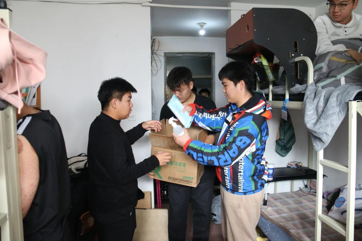 荣耀体育(中国)国际教育学院走访学生寝室,发放卫生消毒用品