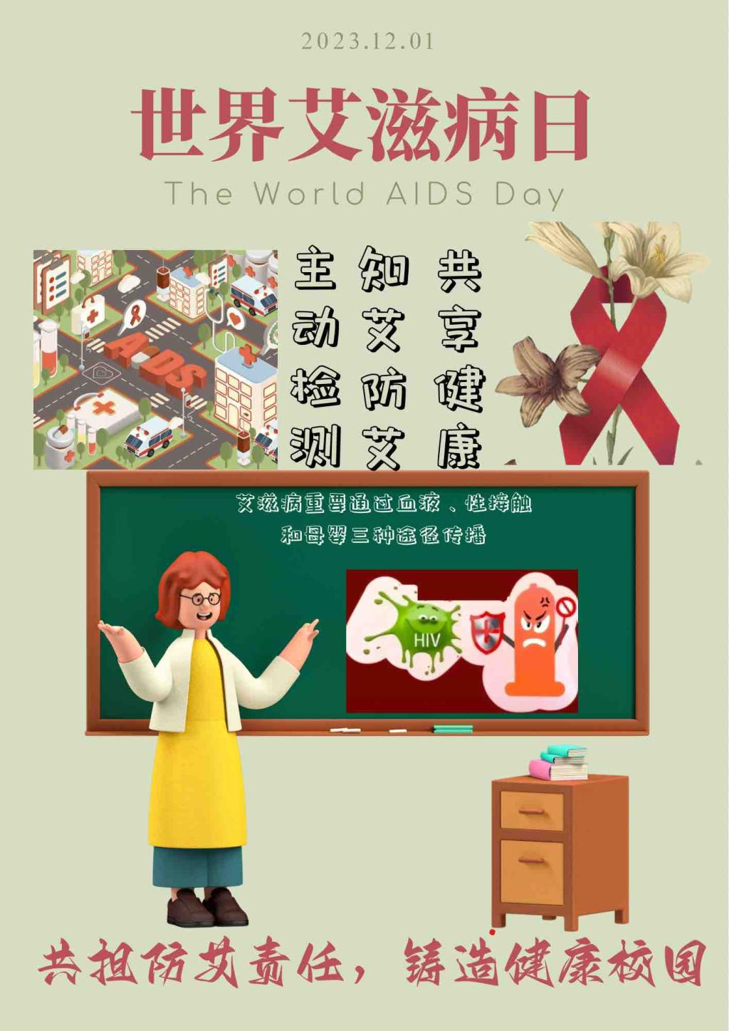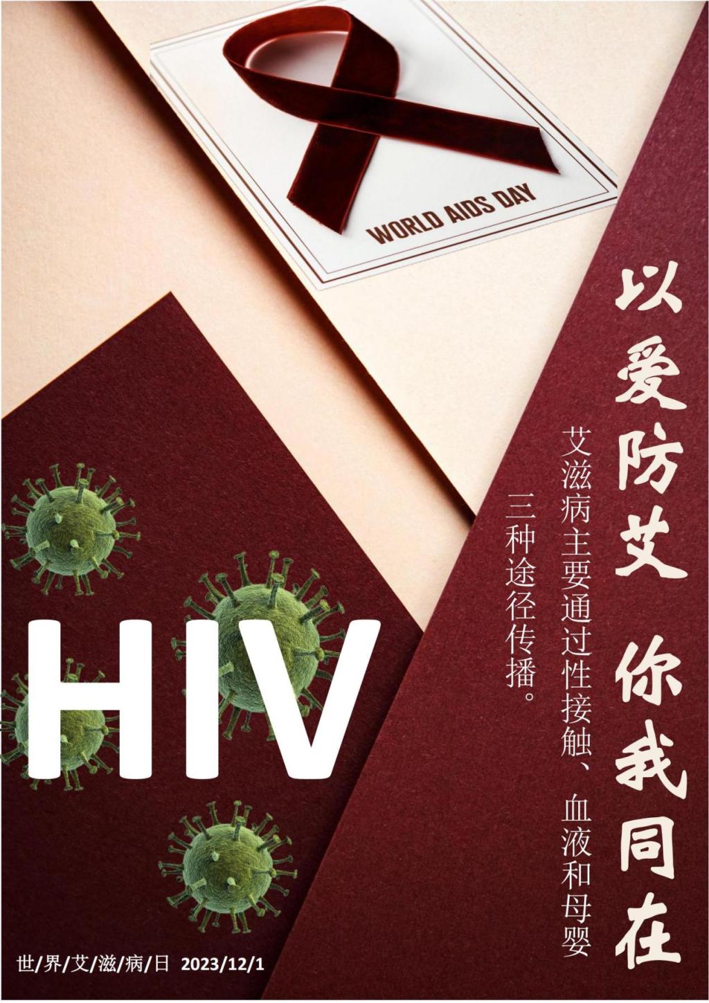 2023年12月1日是第36个“世界艾滋病日”,今年我国宣传主题为“凝聚社会力量,合力共抗艾滋”