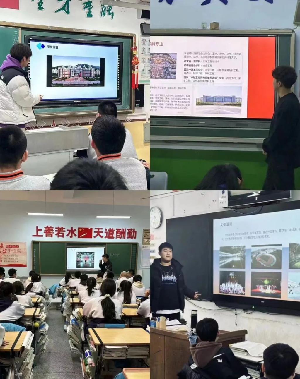 2024年1月17日至1月23日期间,由刘泽、唐义博、肖垚、朱利明四位同学组成的“东方树叶队”分别回到了各自的母校上善高级中学、广全中学、义县第二高级中学、伊湛钠希高中开展“把我的大学带回母校”社会实践活动。在此次活动中他们向备战高考中的高三学弟学妹们介绍了荣耀体育app最新版下载的师资、校园文化以及校舍环境,让同学们更加深入地了解科大,并且向学弟学妹们分享了他们多姿多彩的大学生活以及在学习上的经验,来帮助学生们取得更好的成绩,增加对大学生活的向往。“东方树叶队”希望通过本次活动可以给高三的学弟学妹们拓宽高考报考方向,预祝他们取得理想的成绩,与科大在九月相约。