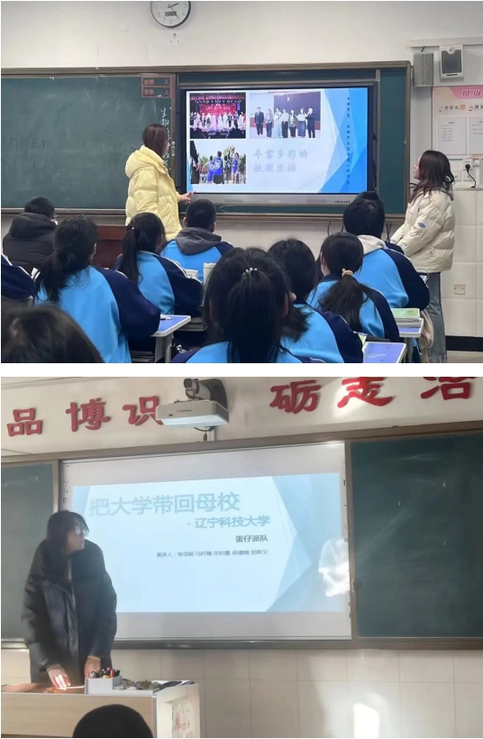 1月17日至22日,由侯婧楠、宋昀霏、张佳妮、马籽暄、郑斯文五位同学组成的“蛋仔派队”在鞍山市第五中学、沈阳市共青团实验中学、鞍山市育英中学等学校开展了“把我的大学带回母校”社会实践活动。他们向学弟学妹们讲述自己在荣耀体育(中国)的故事,让他们更加深入了解了真正的大学生,大学生活是什么样,使他们对大学有了更多的憧憬与遐想。在荣耀体育(中国),她们不仅收获了丰富的知识和技能,更收获了交心的朋友和难忘的回忆。这次的活动让她们有机会把这些宝贵的财富带回母校,与学弟学妹们分享。并通过发放调查问卷的形式收集学弟学妹们的升学意向、未来规划以及对大学生活的期待。作为新一代大学生,肩负着时代责任,更应牢记初心,不忘使命,让青春在全面建设社会主义现代化国家的火热实践中绽放绚丽之花。