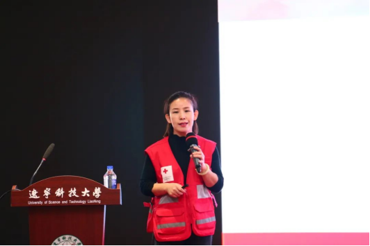 本次培训由鞍山市红十字会应急救护师资刘亚纳主讲。她为同学们分别介绍了家庭中一些常见急症,气道异物梗阻以及心搏骤停等意外情况,并与红十字会其他讲师一同示范了背部叩击法,腹部冲击法,模拟演练了心肺复苏,以及AED除颤仪的使用等急救手段。最后,与会讲师们和参会同学分为四组进行了紧急救护实操演习,同学们纷纷运用所学知识进行急救训练。