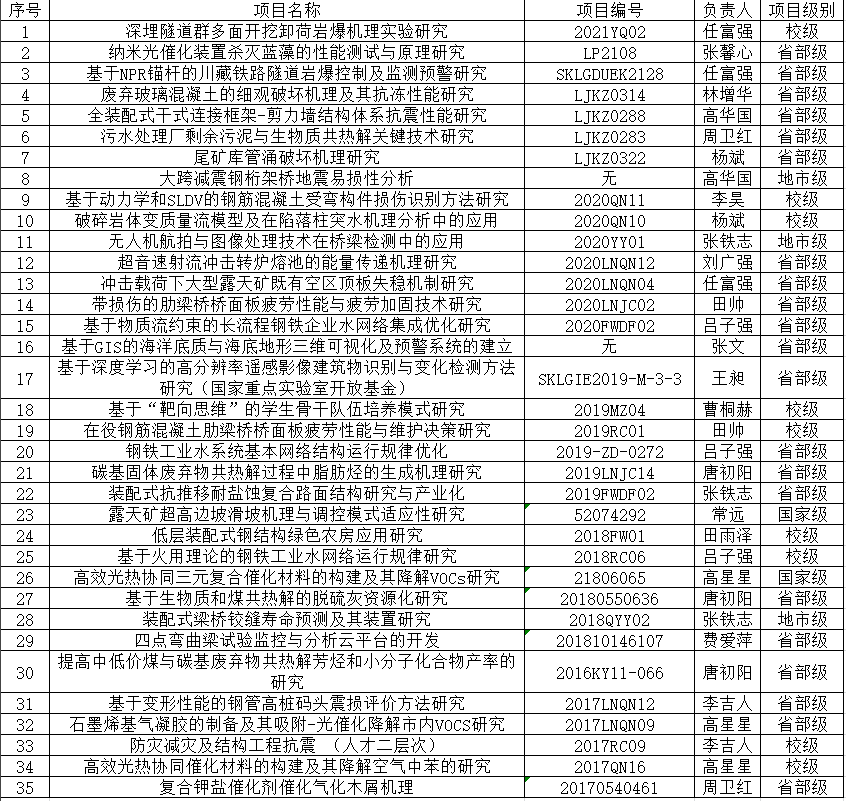 近五年土木工程学院纵向项目汇总