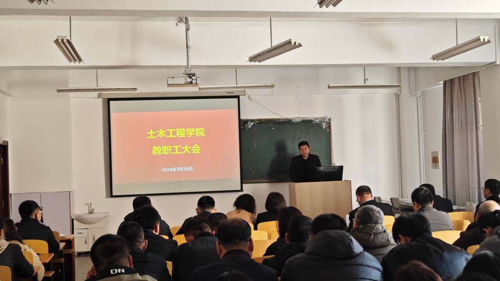首先,土木工程学院党委副书记、院长周卫红作题为“先立后破 奋力攻坚实现学院全面转型发展”的工作报告。周卫红在报告中全面总结学院2023年工作,汇报学院在党建引领、专业建设、学科发展、学生工作等多项工作取得的成绩,同时指出学院发展存在的短板和瓶颈,并阐述2024年学院工作要点,明确工作思路,列出任务清单,鼓舞全院教师务实干事。随后周卫红作学院财务工作报告。