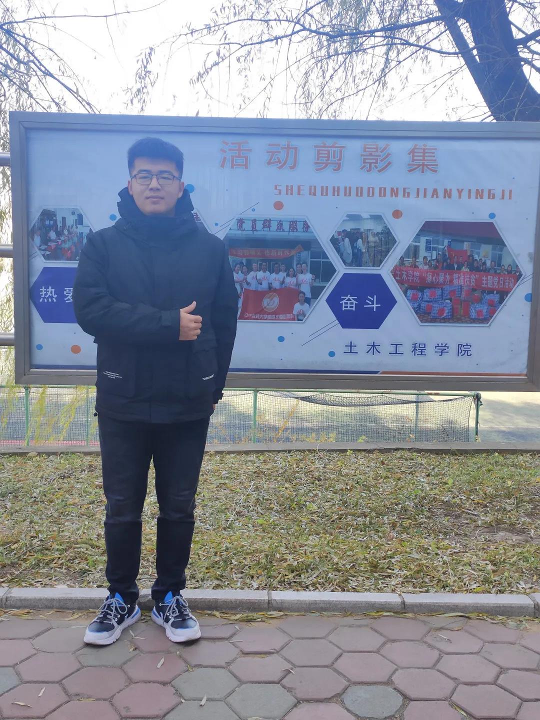 他不仅学习成绩不错,各方面素质都很突出。他喜欢参加各类活动。在两次校运动会中,他两次代表学院参加项目,获得了校运动会“火车跑”第三、第四名的成绩。在ERP沙盘模拟大赛中获得了三等奖,在校结构设计大赛中获得了优秀奖。在2020年辽宁省“挑战杯”创业计划大赛中获得了校赛特等奖、省赛铜奖。一路上开朗自信,乐于助人,成绩优异,工作出色,综合素质高。“人的一生,没有最高层次的目标,只有更高层次的追求,人只有不断向着更高层次目标不懈追求,才会不断发展、进步。青春只有一次,但求面对碧海苍天扪心自问时他能骄傲地说:拼过无悔!”一定加倍努力,以自己的实际行动一步一步实现自己的人生价值与社会价值!做一名合格优秀的大学生。