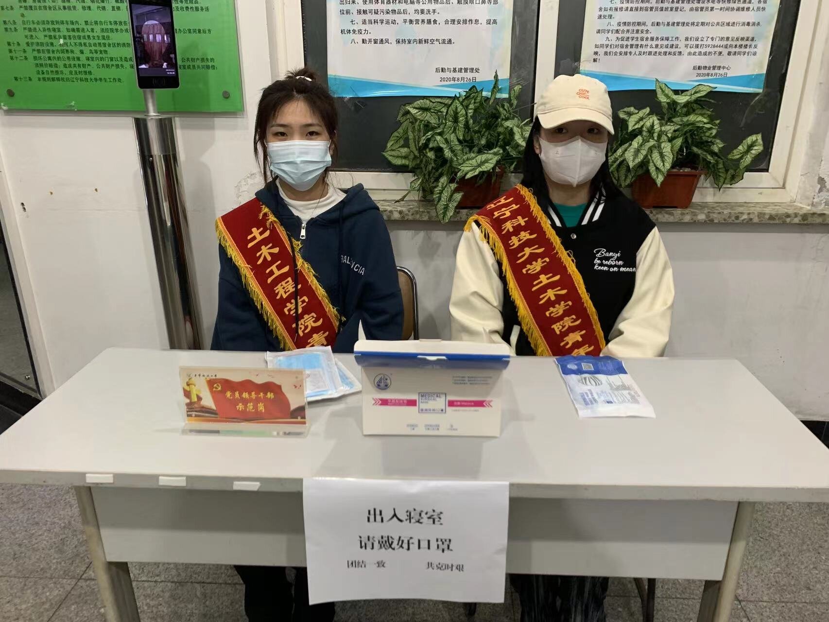 据统计,土木学院现已有150余名同学参与到志愿服务活动中去,用青年的肩膀扛起疫情防控重担。一名学生党员说道:“作为一名预备党员和学生干部,我有责任参与到学校的防疫工作中,为校园安全贡献自己的青春力量。”
