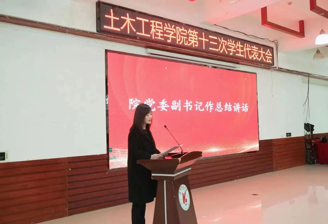1019日,土木工程学院第十三次学生代表大会在大学生活动中心召开。学院党委副书记王一、团委副书记李振南、辅导员李奇出席会议,校团委教师张桐受邀出席,来自各年级的69名学生代表参加会议。会议由土木工程学院第十二届学生会办公室负责人徐晓莹主持。