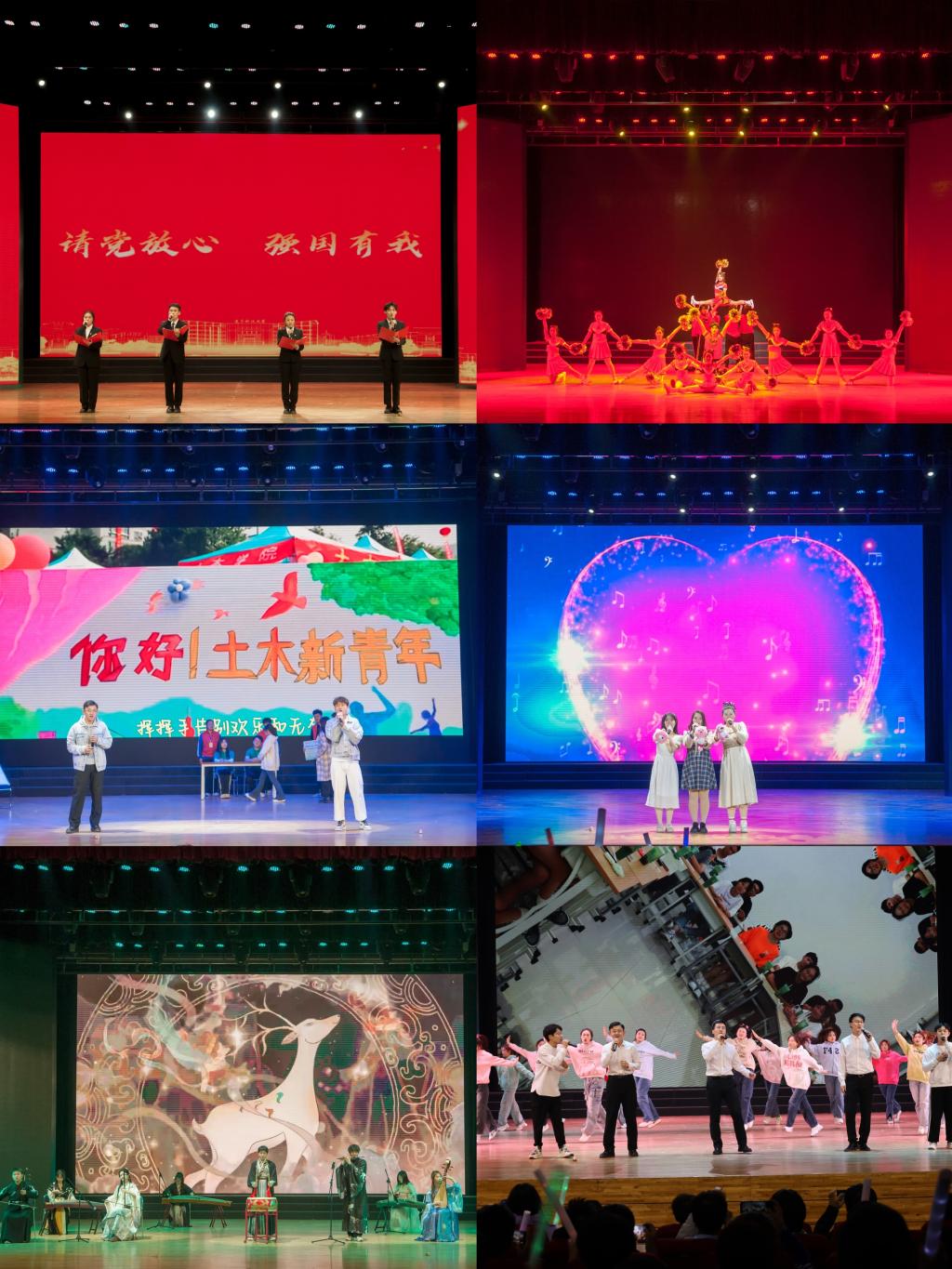 学院学生工作负责人表示,为了给师生们带来最好的视听体验,台前幕后的全体人员付出了巨大努力,通过精彩的表演展现了土木学子以“有我”的精气神,共同向党、向祖国许下“请党放心、强国有我”的青春誓言!