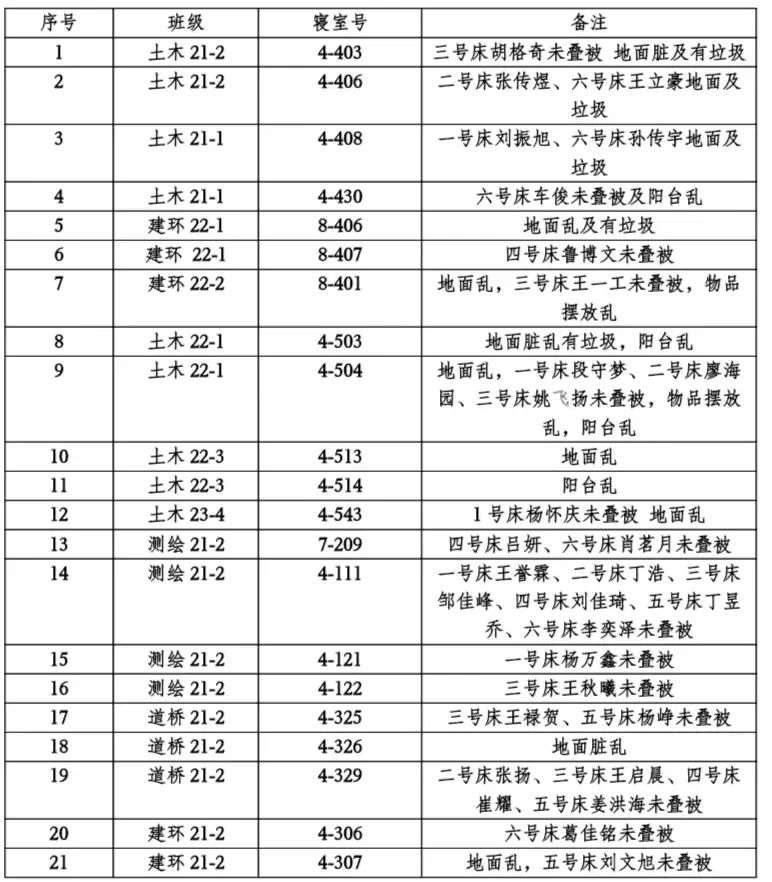 土木工程学院大学生自我管理委员会于2023109日至1013日面向学院开展检查工作,检查结果通报如下。