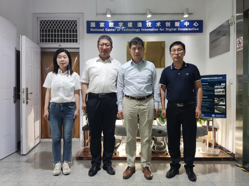 调研组参观华中科技大学国家数字建造技术创新中心。中心主任骆汉宾教授详细介绍了智能感知与工程物联网实验室、智能工程机械与建造机器人实验室、工程大数据平台与智能服务实验室和数字化设计与CIM实验室等实验中心。在交流中,骆汉宾教授建议学院智能建造实验室要以学生能力培养为出发点,设置能力训练项目,配置实验设备,对智能建造专业所需要开设的实验项目给予了具体指导。周卫红院长还就智能建造专业学生培养目标、课程设置、未来就业岗位等与骆教授进行交流。骆教授向土木学院赠送本人编写的《工程项目管理信息分析》教材。