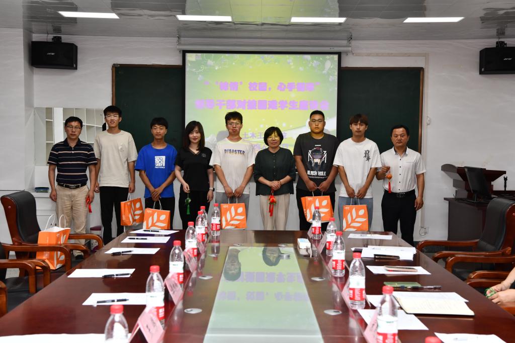 6月19日,荣耀体育app最新版下载土木工程学院“‘粽情’校园,心手相牵”领导干部与对接学生座谈会于博观楼408会议室召开,学校党委常委、纪委书记宋明凯、部分职能部门负责人、学院领导班子成员与对接的11名同学深入交流,并将承载祝福与希冀的端午节慰问品发放到学生手中。