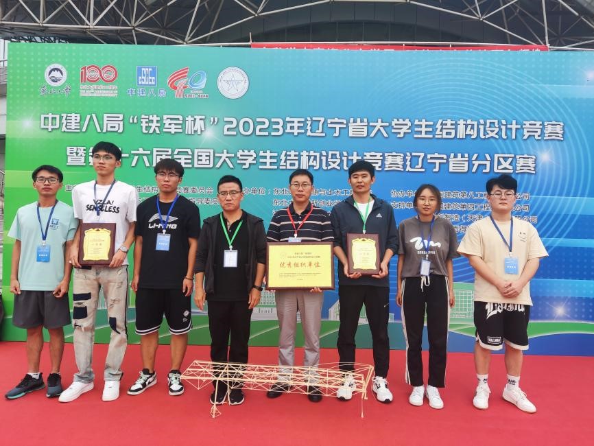 2023年8月24日至28日,由全国大学生结构设计竞赛委员会、辽宁省土木工程专业教学指导委员会和辽宁土木建筑学会主办、东北大学承办的中建八局“铁军杯”2023年辽宁省结构设计竞赛暨第十六届全国大学生结构设计竞赛辽宁省分区赛在沈阳市东北大学圆满闭幕。本届大赛共吸引来自25所高校的51支精英队伍参加,土木学院教师李吉人指导的刘健、丁晟轩、李俊峰团队获省大赛一等奖,李建强指导的邱永康、周鑫聪、焦杰团队获二等奖,荣耀体育app最新版下载获优秀组织单位。