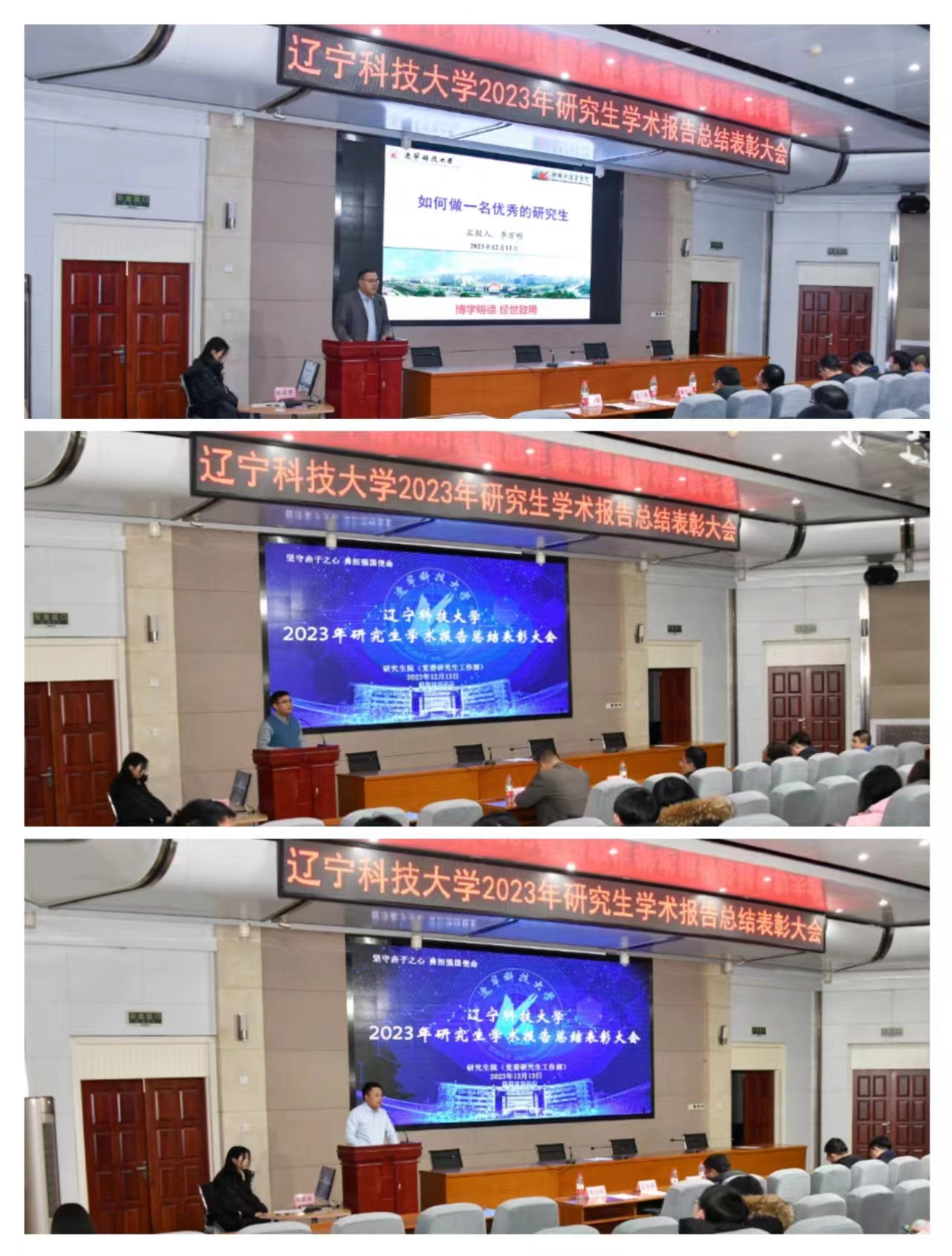 李胜利副校长在讲话中指出,2023年研究生学术报告会各承办学院精心组织筹划,高质量承办11场学术报告会,238名学生汇报学术成果,活动设计别致新颖,很多专家和学生就前沿学术知识和先进的学术理念提出很多新见解;从报告的参与度和辐射面来说,达到了预期效果。随后,他围绕一流学科建设目标,就拔尖创新人才培养提出了三点要求和希望。一是要立足学校高质量发展新格局,做好学术报告的顶层设计和谋划工作,优化组织形式,提升报告的品牌影响力。二是要以学校一流学科建设为目标,从加大学科竞赛的资助力度、增加学生奖励引导等方面加大优秀拔尖创新人才培养。三是要深入贯彻落实立德树人根本任务,在坚定理想信念、厚植爱国主义情怀、加强品德修养等方面多下功夫,培养学生成为爱党爱国爱家爱校,具备浓厚家国情怀和人文素养的时代新人。