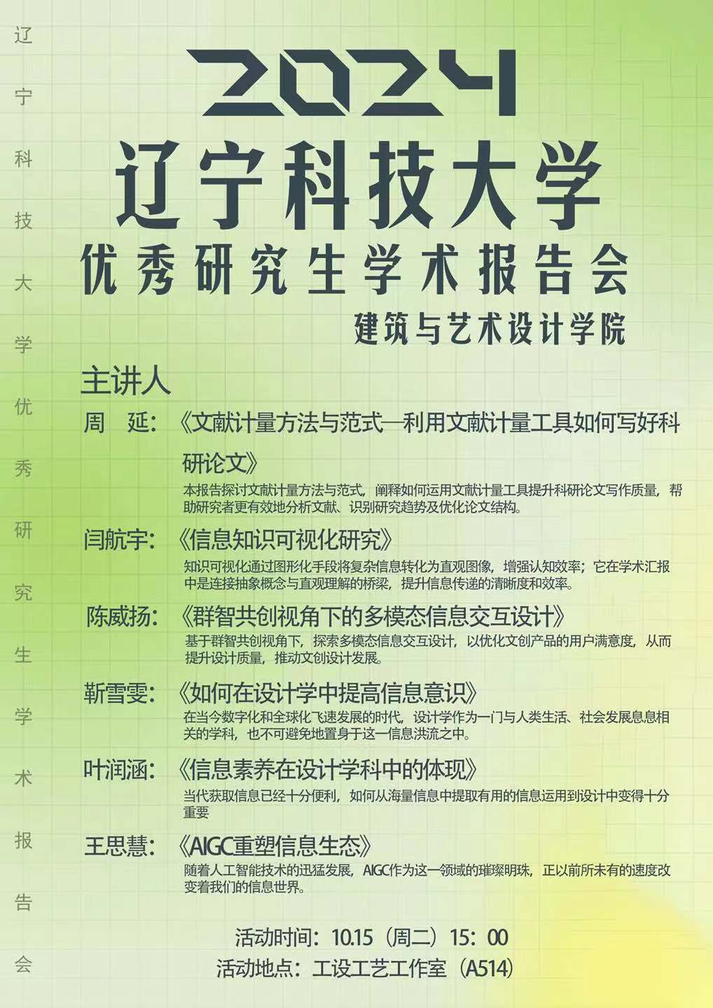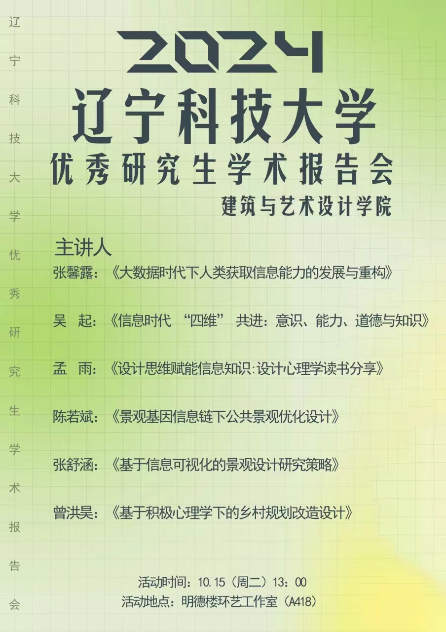 2024年荣耀体育app最新版下载建艺学院研究生学术报告会时间安排