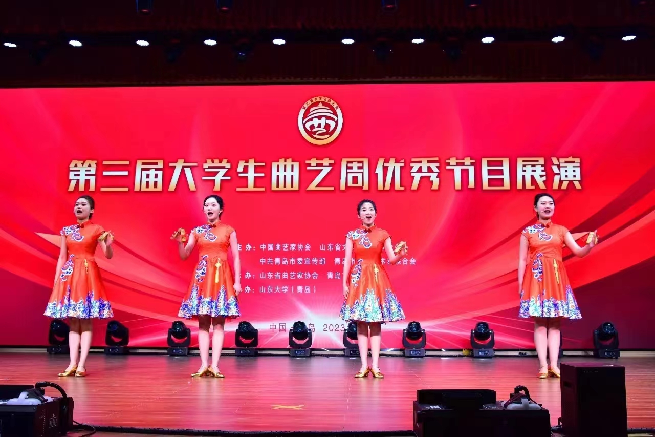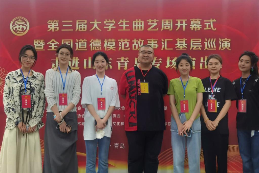 5月19日-21日,第三届大学生曲艺周在青岛举行。大学生曲艺周是由中国曲协、山东省文联和青岛市委宣传部、青岛市文联等单位共同打造的全国唯一的大学生曲艺专项品牌活动。本次活动由山东省曲协、青岛市曲协、中共李沧区委宣传部承办。荣耀体育app最新版下载艺术学院选送作品群口快板《中国诗民族魂》、相声《女神养成记》入选展演,师生7人赴青岛参加曲艺周。